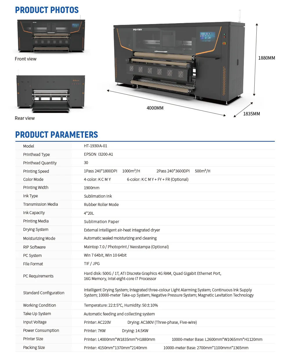 Printer Size Printer: L4000mm*W1835mm*H1880mm
